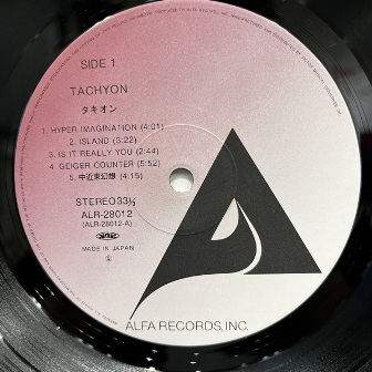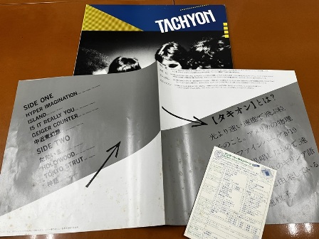ムーンダンサーの沢村拓、厚見麗が結成したタキオン、唯一作。国内盤オリジナル、インサート付、帯欠。インサートはシミあります。ハードなオルガンに甘いヴォーカルが特徴。 |